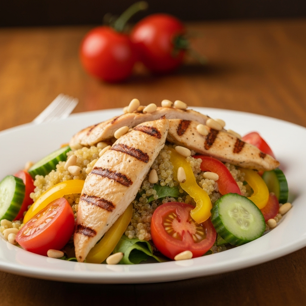 Salada Mediterrânea de Quinoa com Frango Grelhado